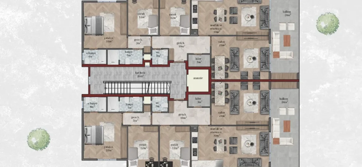 - Geniş 4+1 daireler